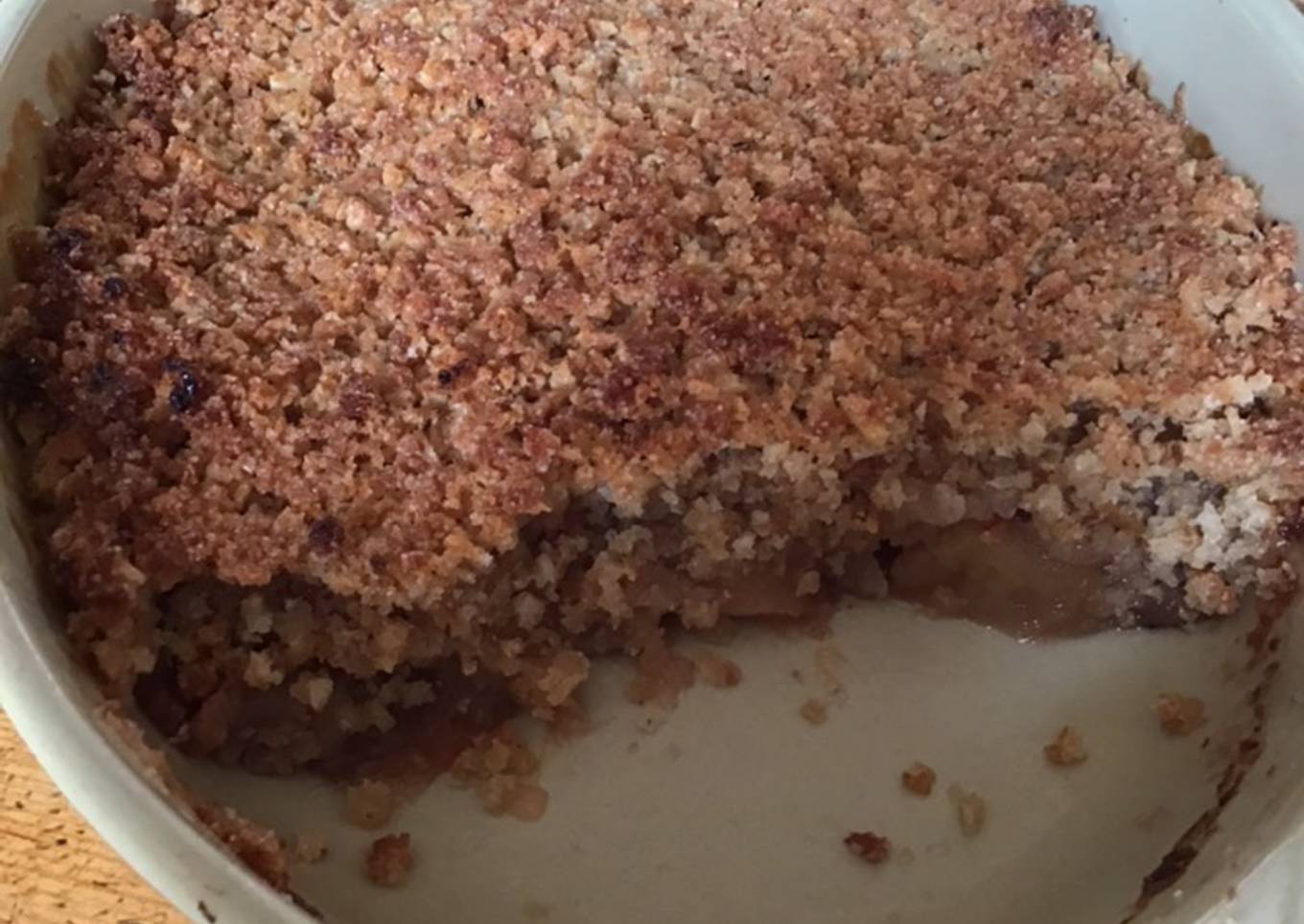 Crumble croustillant aux pêches pommes et poires du jardin (et chapelure maison)