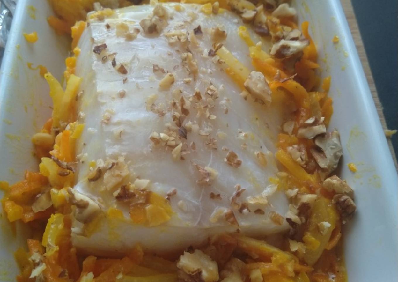 Ingredients and spices that need to be Take to make Papillote de poisson potiron et noix:
