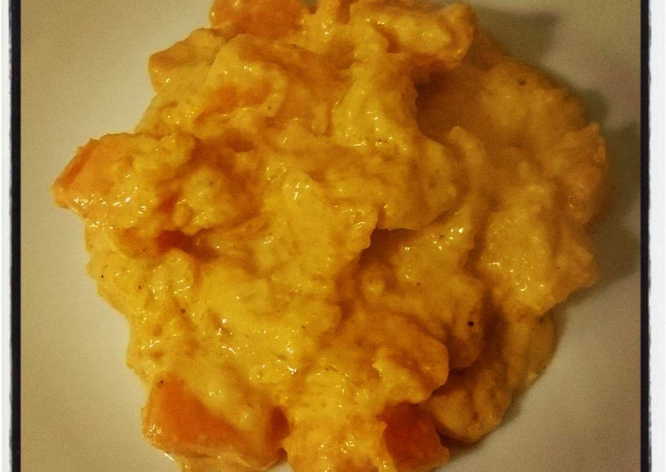 - Lorsque les cubes deviennent fondants, ajouter le curry, le beurre de cacahuète et la crème de coco. Laisser mijoter 5 minutes.