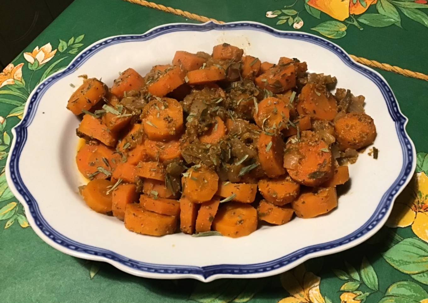 Carottes des sables aux épices, estragon et oignon de roscoff