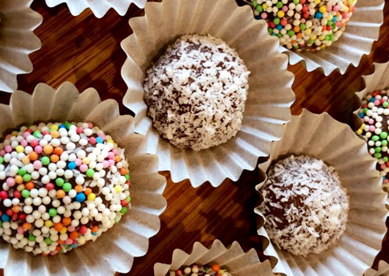 - Préparer les moules, la décoration dans un petit bol, et une cuillère. Graisser les mains ou gants et commencer les Brigadeiros.